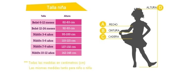 • Tallas disponibles para niños y niñas.